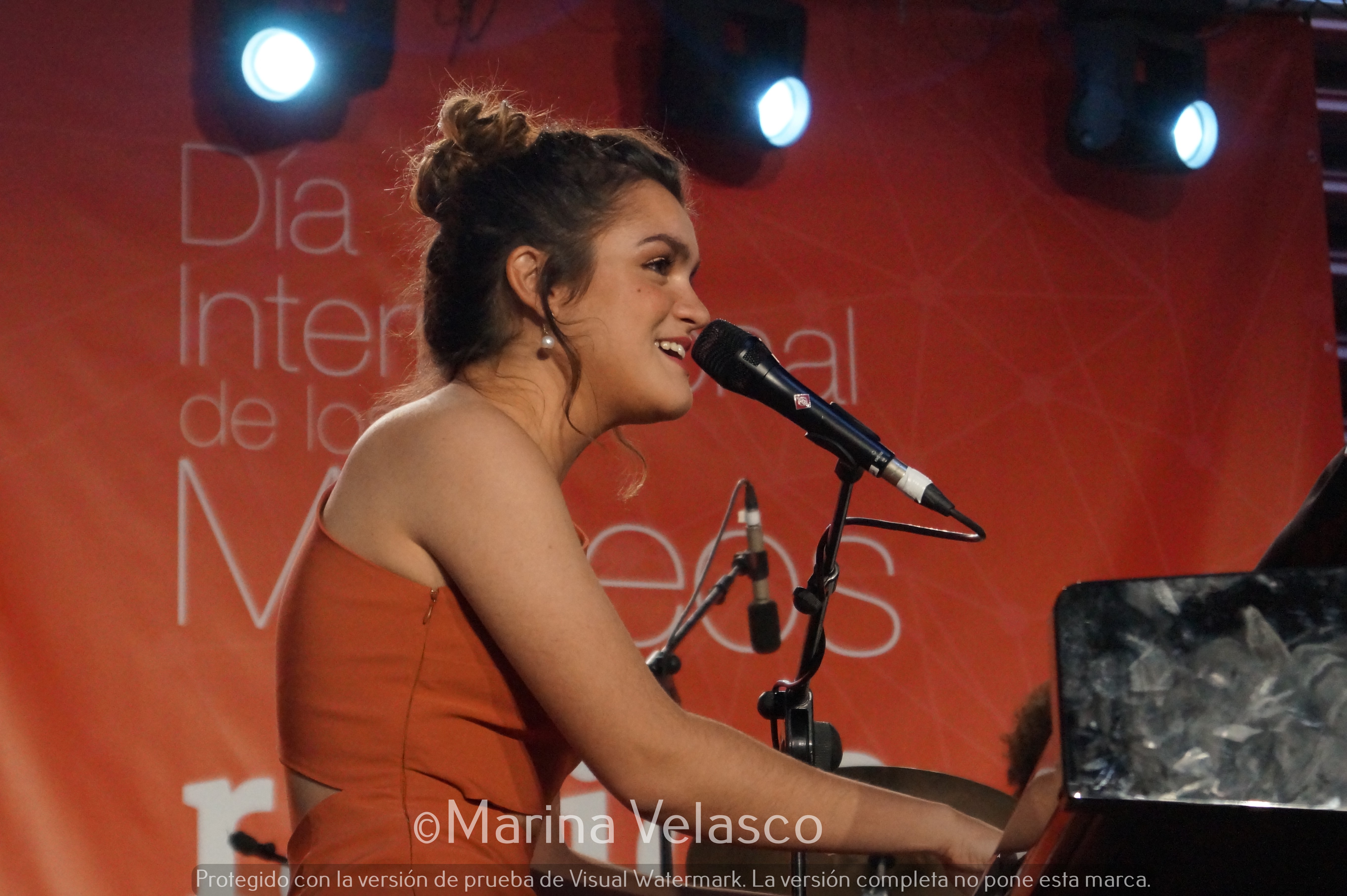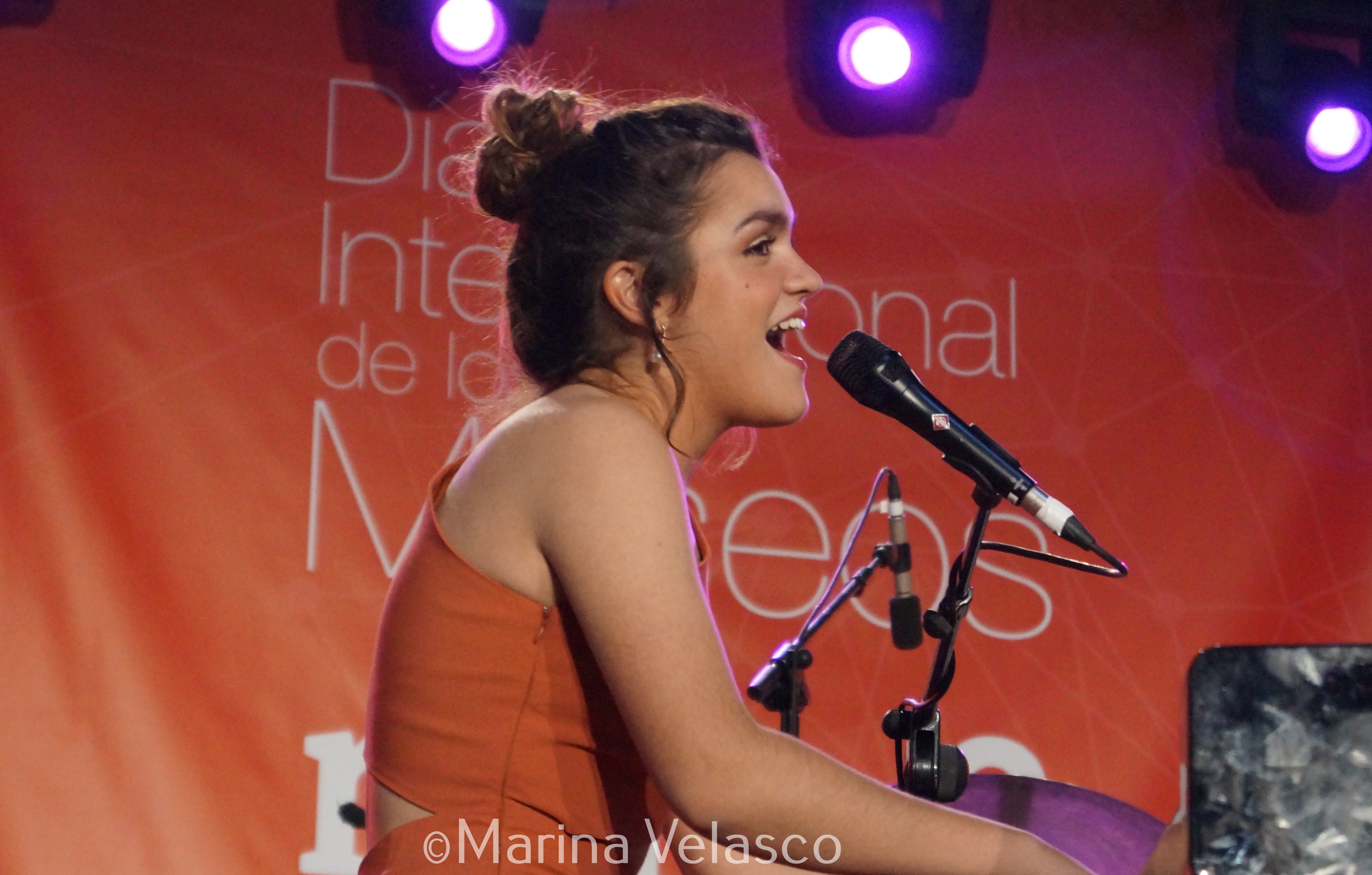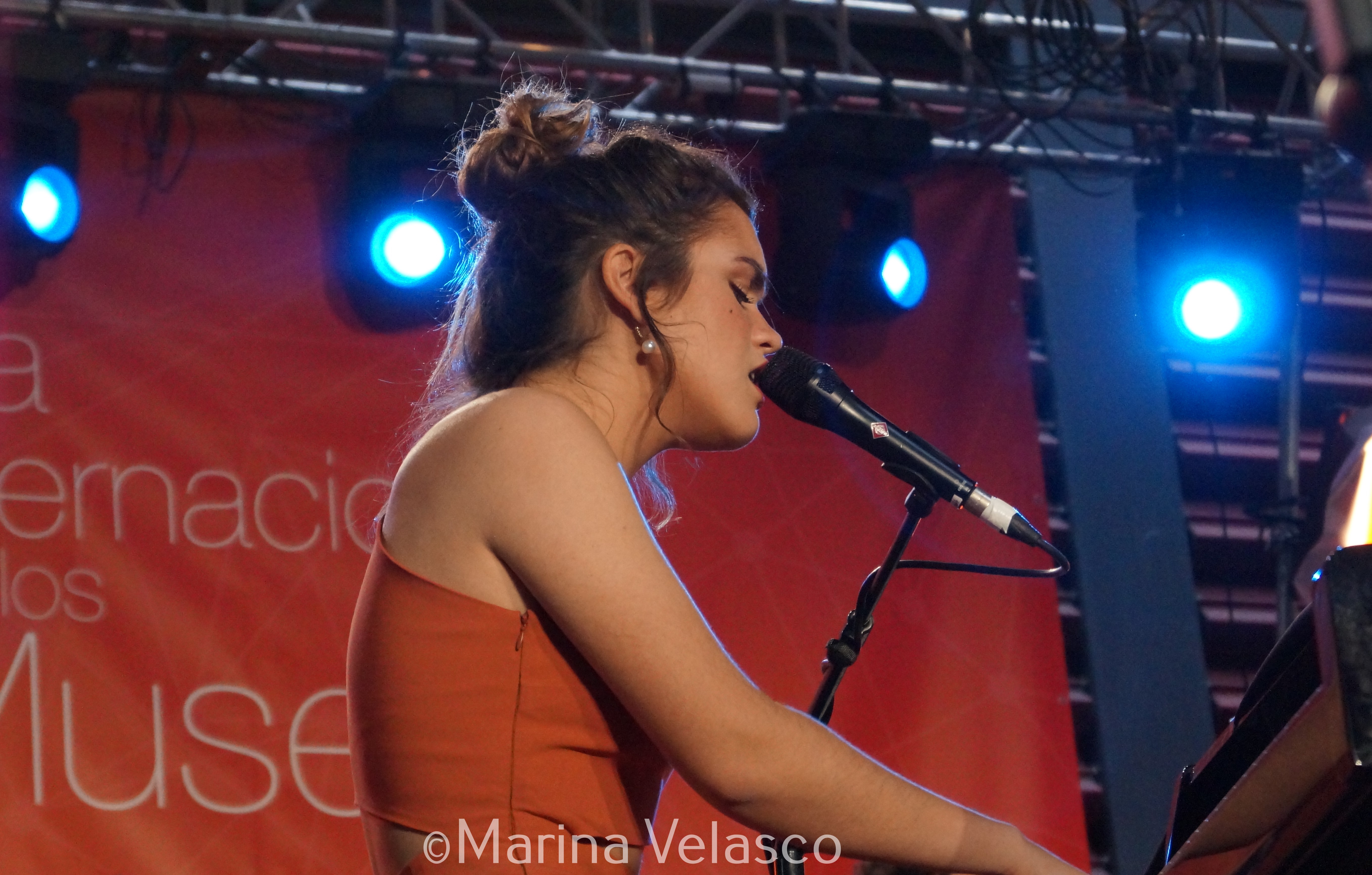 El patio del reina Sofía acogía estos tres conciertos tan esperados. Mientras nos dirigimos al interior, sorteamos una cola inmensa de gente. Esperaban para una actuación muy especial, la de Amaia Romero, una cantante que abraza la emoción cada vez que se sube al escenario. Un espacio muy pequeño para el arte infinito de una cantante que está escribiendo su música entre pentagramas que gritan libertad. Amaia es de esas mujeres que se atreven, que no se conforman, que quieren hacer las cosas bien. No importa esperar por ella porque esta joven pamplonesa es calidad musical en estado puro. Amaia aparece en el escenario mientras el público corea su nombre. Una sonrisa tímida, saluda, se sienta y sus dedos se entremezclan con el piano de forma milagrosa. Una última mirada hacia la gente, un brillo en los ojos con los que agradece cada gesto de cariño y apoyo que siente muy cerca. No hace falta que hable, su cara lo dice todo. Está viviendo uno de los momentos más especiales. Es el inicio de una carrera fiel a su esencia. Lo que siempre quiso ser y hacer con su música.