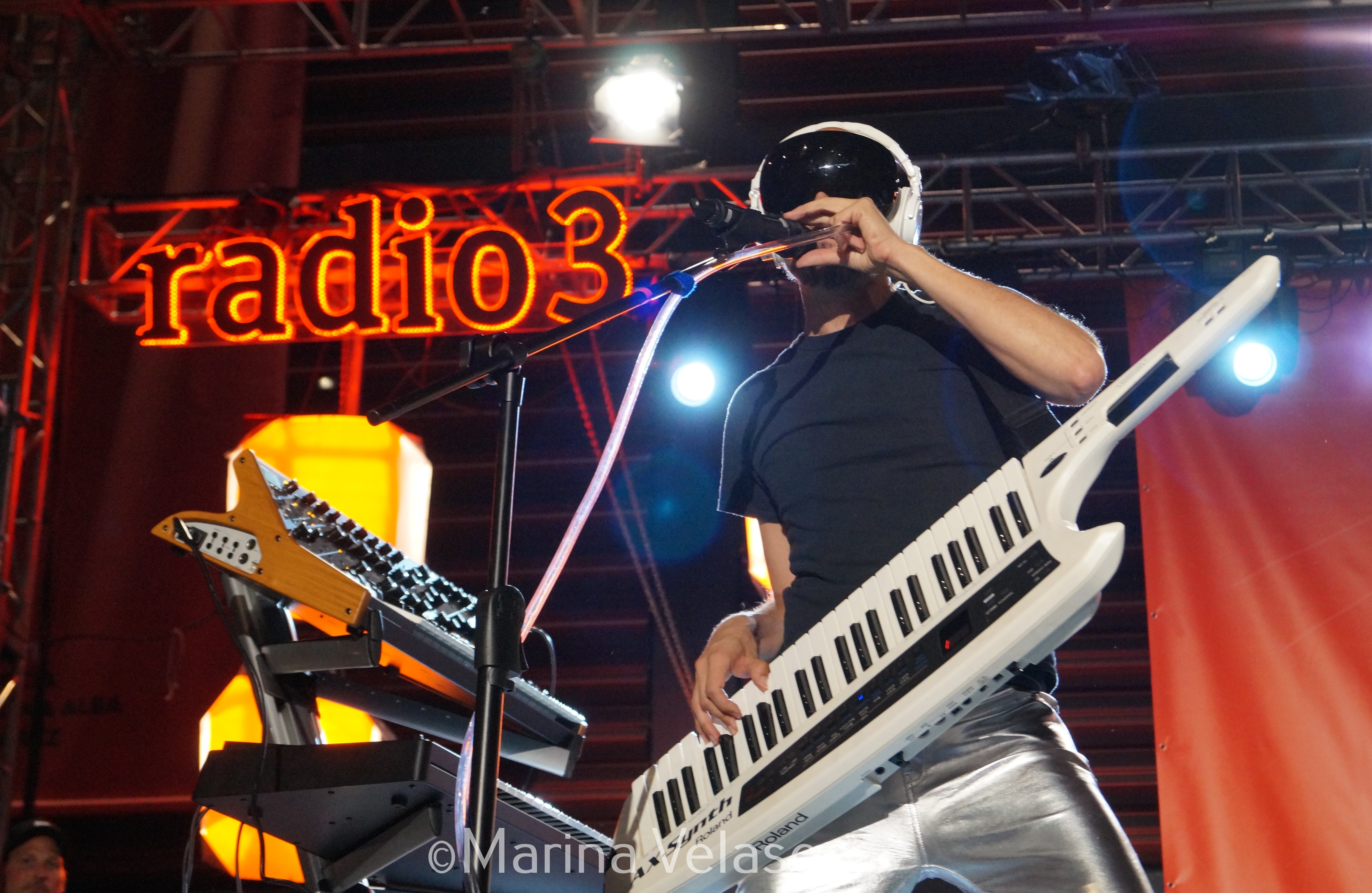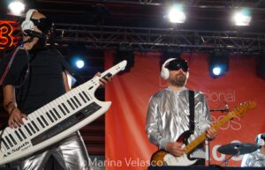 La Casa Azul subió al escenario. Era el turno de la banda de Guille Milkyway, los encargados de cerrar el fin de fiesta del Día de los Museos. Lo hicieron de la mejor de las maneras, con su música. Los integrantes del grupo salieron a escena con unos uniformes galácticos de color plateado y unas gafas negras. Parecían salidos del espacio para revolucionar el patio del Reina Sofía.