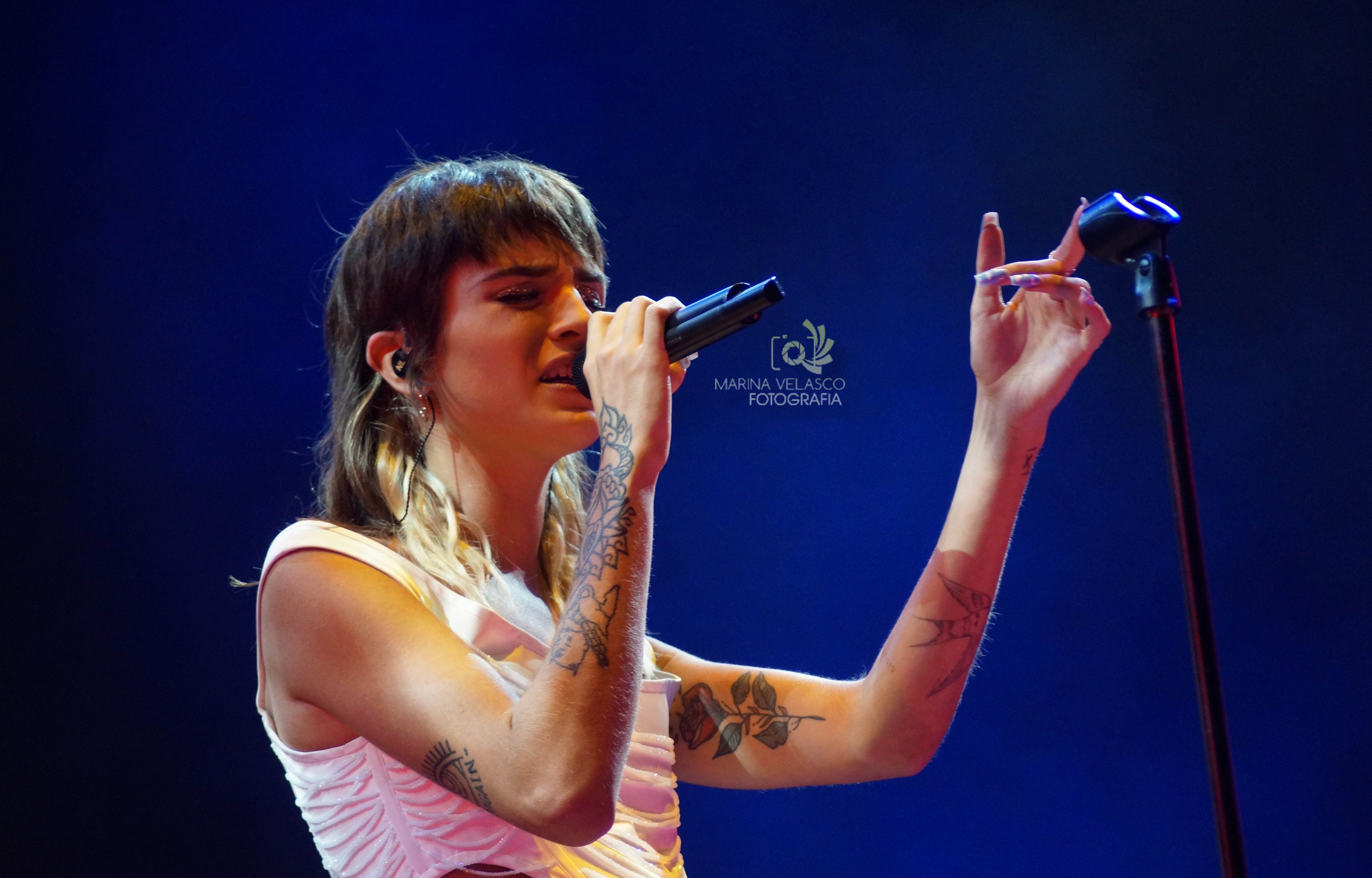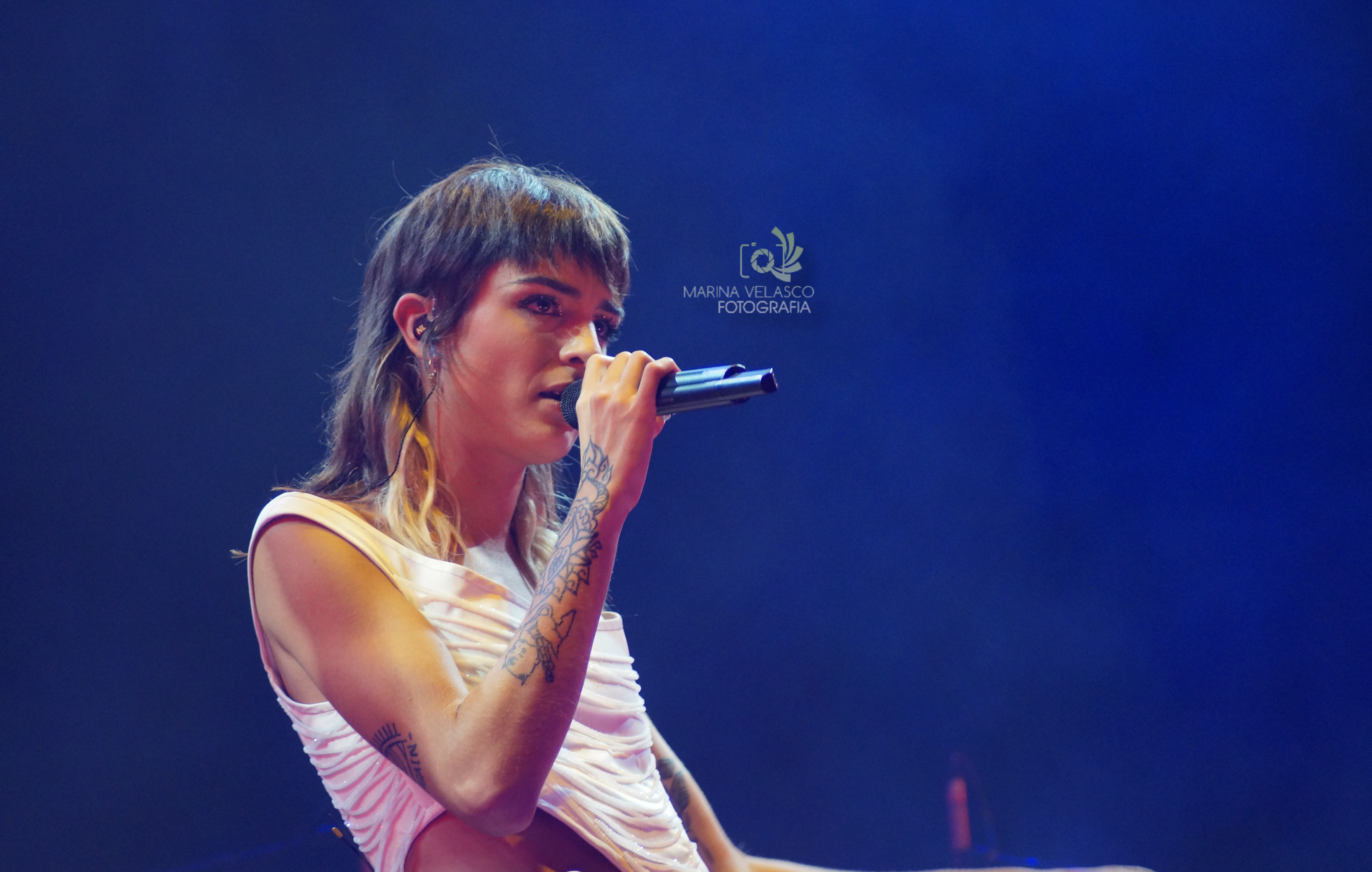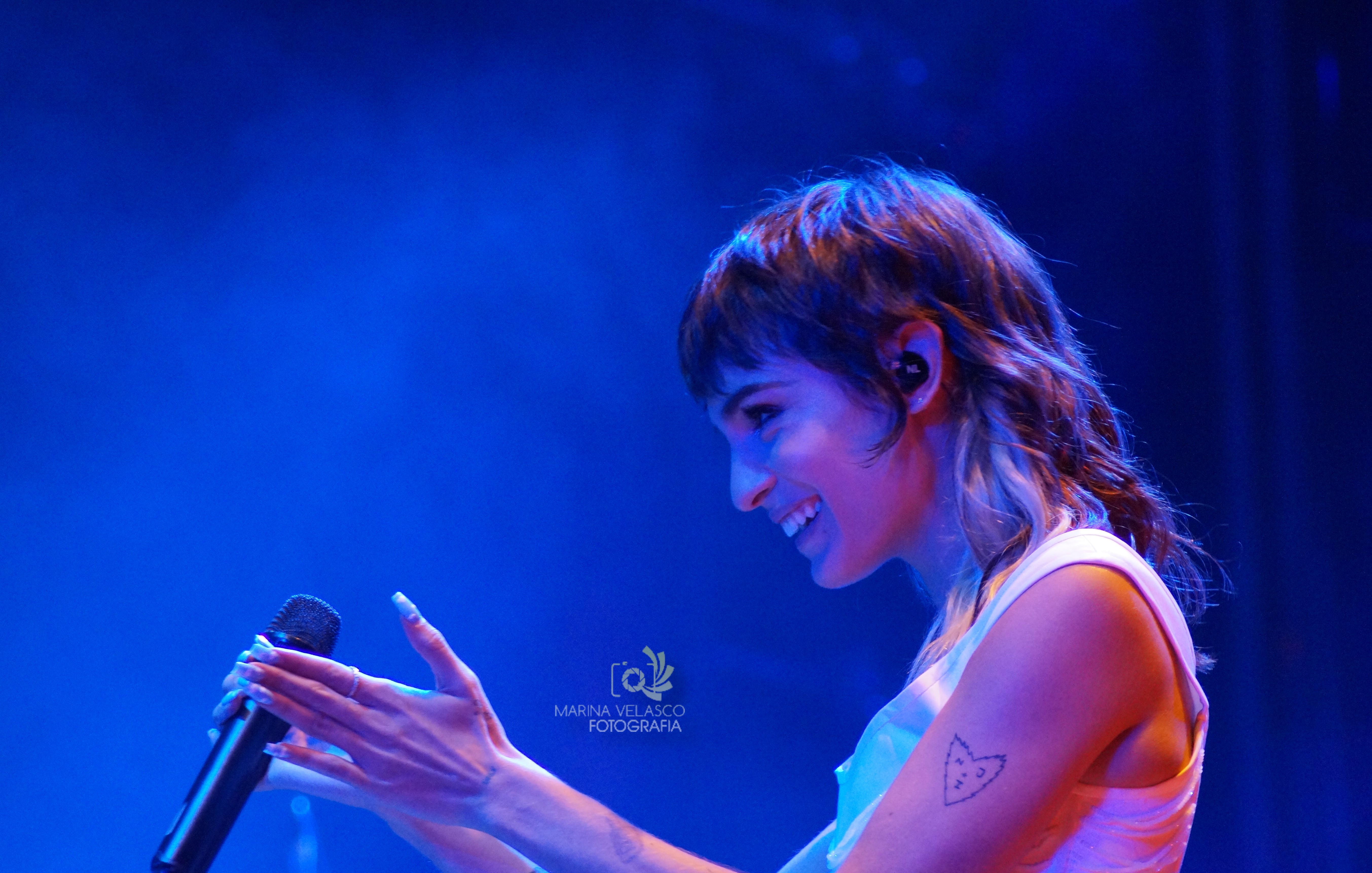 Dani Costas fue la artista independiente que abrió el concierto de la pamplonesa con un sonido muy personal, navegante entre el indie y el pop, con aires mezclados con un funky realmente atractivo. La joven presentó su primer disco Veinte y llenó de color y buena vibra la inauguración de este festival. Pudimos escuchar Mira, Si te vas o una versión muy especial de Bizarre Love Triangle. Al final, en su tema Lágrimas los móviles se quedaron a un lado y el público decidió darlo todo desde sus asientos.