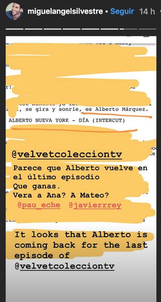 Los actores fueron los primeros en compartir la noticia en sus redes sociales. “Parece que Alberto vuelve en el último episodio, qué ganas”, publicaba Silvestre acompañando el texto de una foto del guión del capítulo que tendrá una duración más larga de lo habitual. El actor tiene varios proyectos a la vista. Se encuentra preparando su protagónico para la serie de Movistar + basada en la historia de Pablo Ibar y también le veremos en 30 monedas, a nueva ficción de HBO.